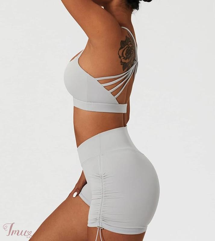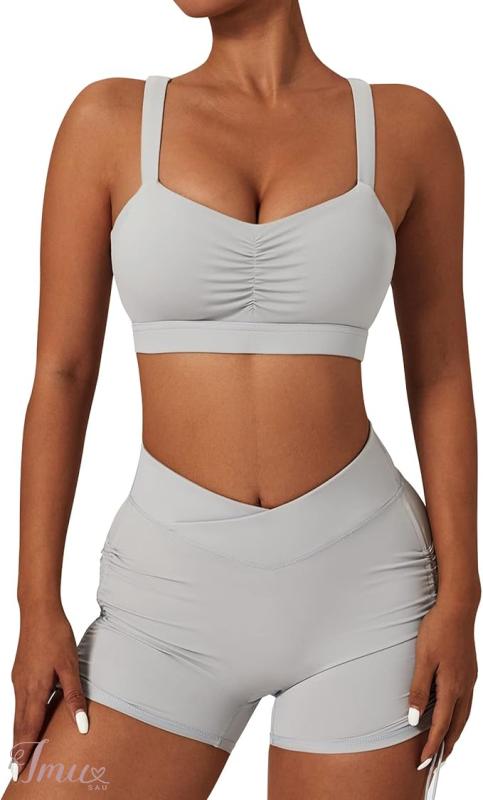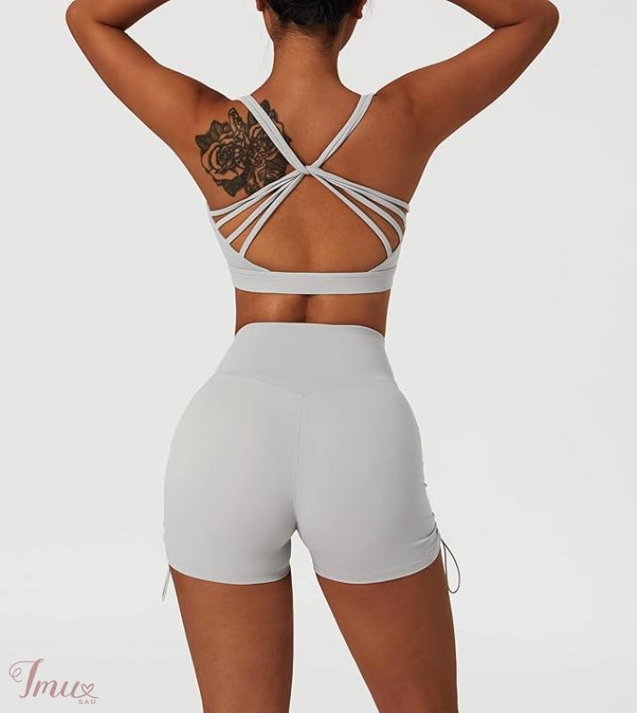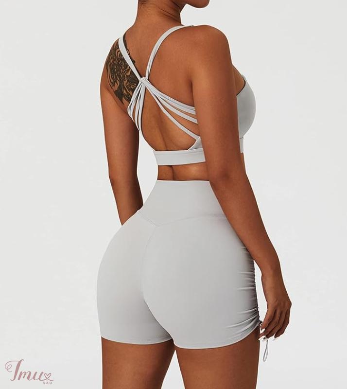 Sportiniai rinkiniai iš atskirų dalių – puikus stiliaus ir patogumo derinys. Šortukai su šonuose susitraukiančiomis detalėmis ir liemenėlė, gražiai persikryžiuojanti nugaroje, suteikia sportiškumo bei elegancijos. Daugiau informacijos: Spalva: pilka, sidabrinė; Išmatavimai: šortų ilgis 32 cm., liemuo 56 cm., krūtinė 60 cm.; Sudėtis: 78% nailonas, 22% elastanas.