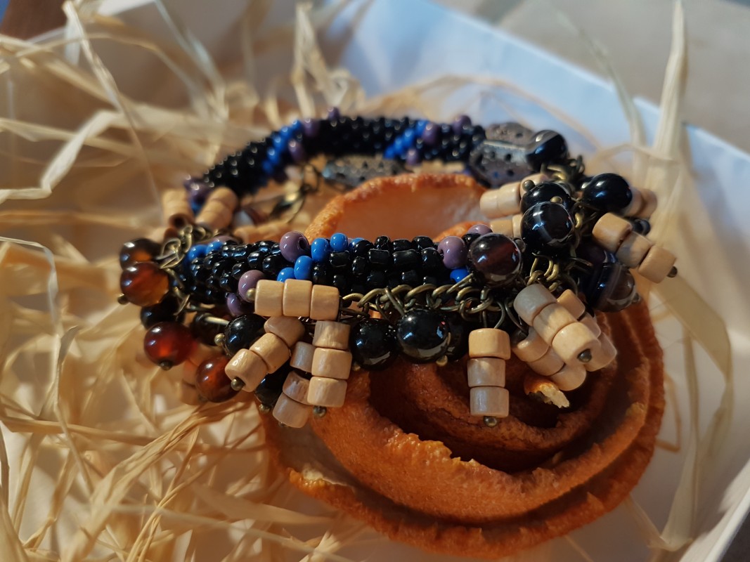 24. Pašėlusi, kelis kartus apie riešą apsisukanti apyrankė . Apyrankės ilgis - 40 cm. Kaina 10€ su registruotu siuntimu Lietuvoje.