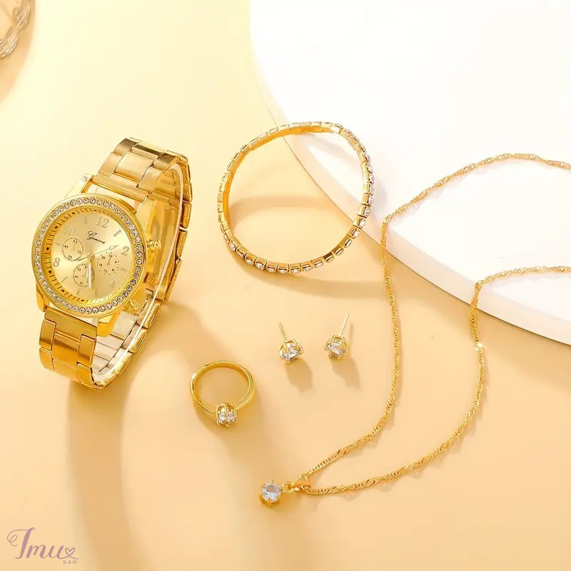 6 vnt. Moteriškas papuošalų rinkinys, aukso spalvos 46626