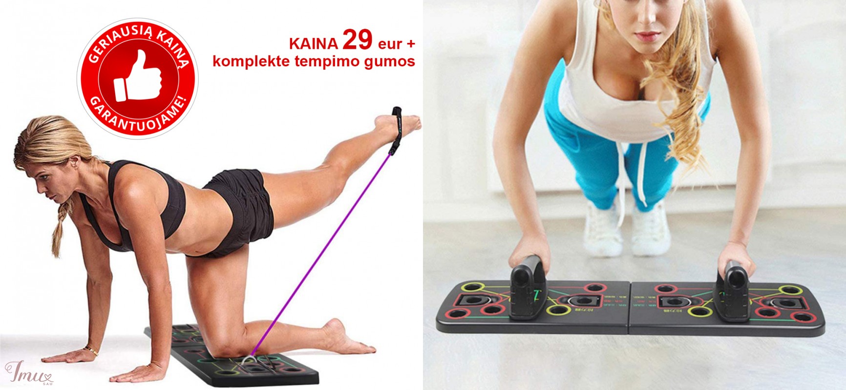 9 in 1 „Push Up Rack“ atramos stovas su pasipriešinimo juostomis AKCIJA 29 eur! + 10 eur nuolaida! Pristatymas visoje Lietuvoje per 1-2 d.d. www.marsietis.lt info@marsietis.lt / +37063977277 Vilniaus g. 230 Šiauliai / Tilžės g. 107, Šiauliai 9 in 1 „Push Up Rack“ lenta su pasipriešinimo juostomis. Nešiojamas, paprastas surinkimas, neužima daug vietos. Pažangus, amortizuojantis, neslystantis sukibimas. Naujai padidėjusi pasipriešinimo juosta gali visapusiškai mankštinti kiekvieną kūno dalį. Skirtingos spalvos, atitinkamoms raumenų grupėms. Rankenėlės pasideda į norimą spalvą ir mankštinami skirtingos raumenų grupės. Galima atlikti prisispaudimo pratimus įvairiomis kryptimis, kojų temimo ir t.t. pratimus. Tinka moterims ir vyrams. Kaina 29 eur. Daugiau informacijos: https://marsietis.lt/9-in-1-push-up-rack-atramos-stovas-su-pasipriesinimo-juostomis-8834 Pristatymas paštu 2 eur / Omina paštomatu 2.97 eur / DPD kurjeriu 3 eur www.marsietis.lt / info@marsietis.lt / +37063977277 Vilniaus g. 230 Šiauliai / Tilžės g. 107, Šiauliai