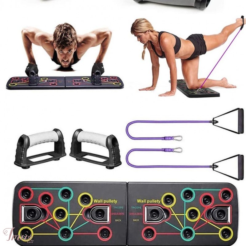 9 in 1 „Push Up Rack“ atramos stovas su pasipriešinimo juostomis