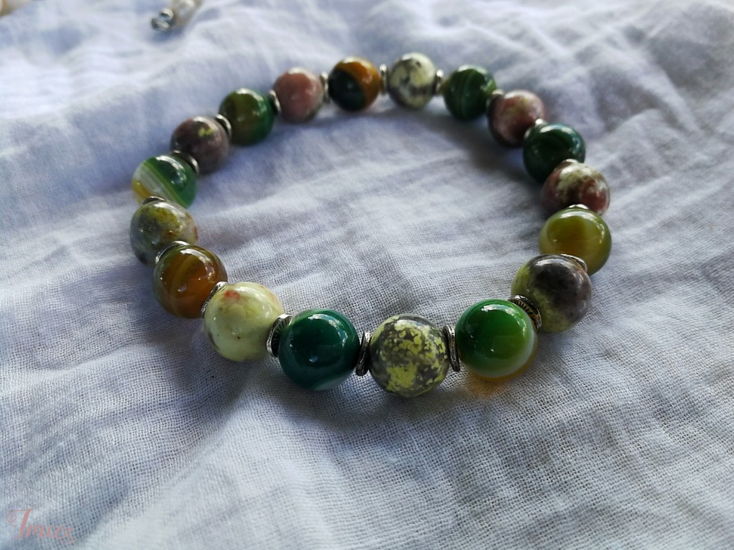 Agatas ir jaspis 10mm. Nerūdijančio plieno detalės.