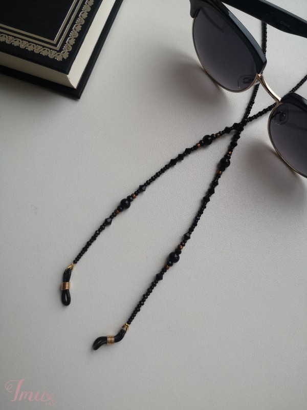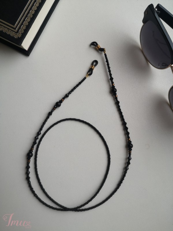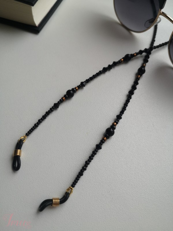 Minimalistinio stiliaus akinių grandinėlė iš juodų karoliukų ir aukso spalvos elementais. Įpakuota dėžutėje 🎁✨