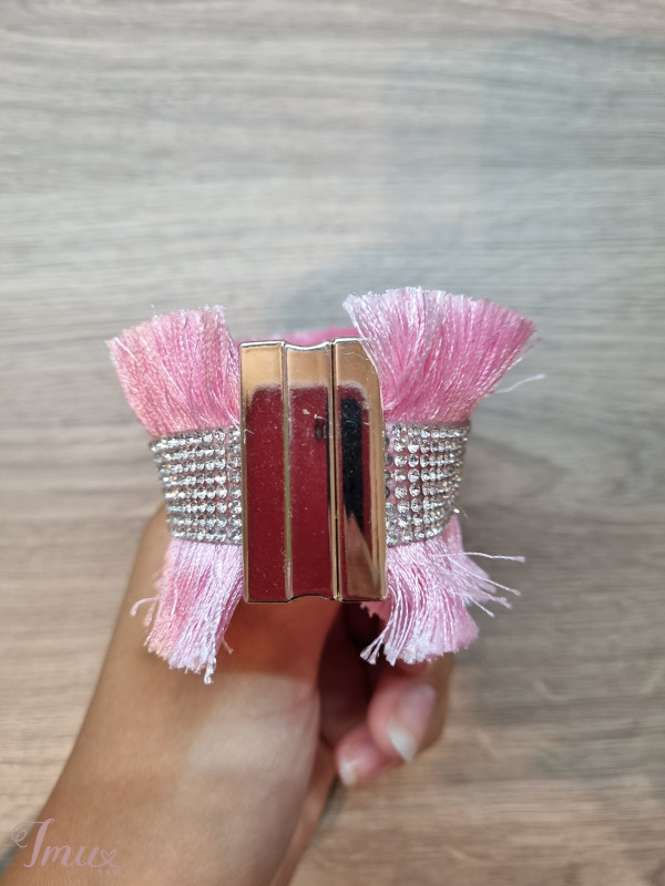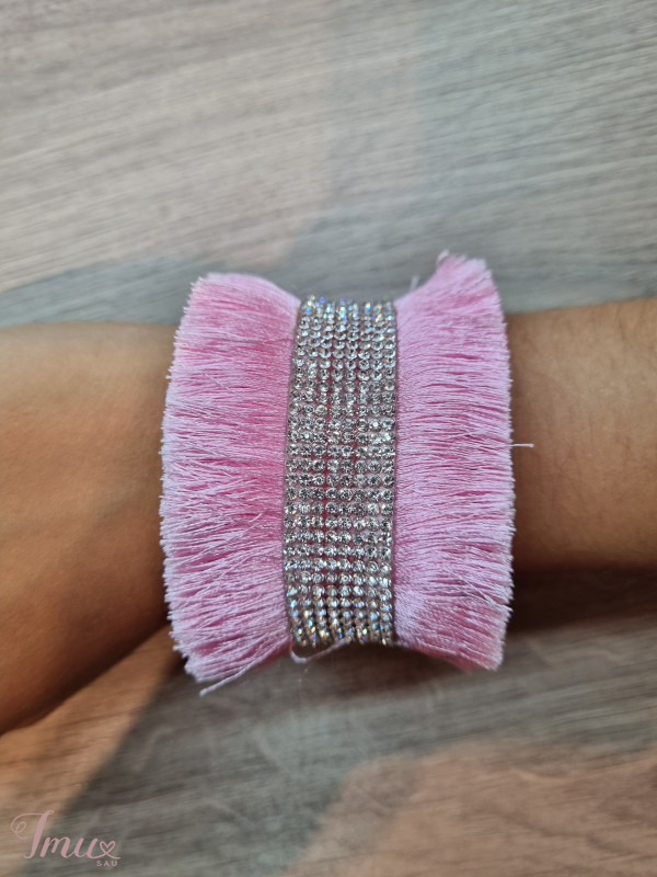 Puikios būklės apyrankė. Apyrankė yra rožinės spalvos, su dirbtinių deimantukų juostele per vidurį. Ji yra gan didelė, todėl tikrai tinka moterims, ne tik mergaitėms.