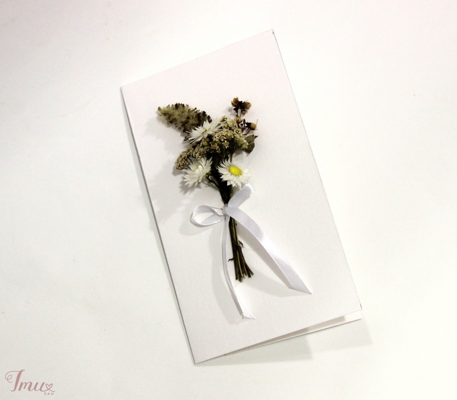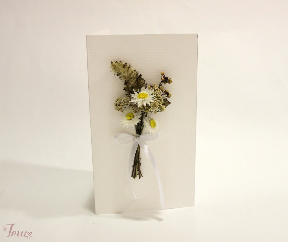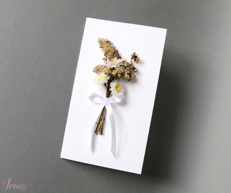 Vienetinis rankų darbo atvirukas- vokelis su sausais augalais.