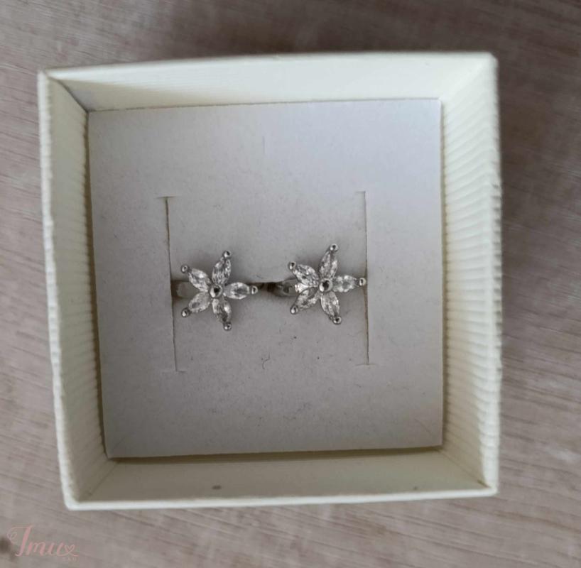 Nauji, sidabriniai, hipoalerginiai auskarai su cirkonio akmenukais.