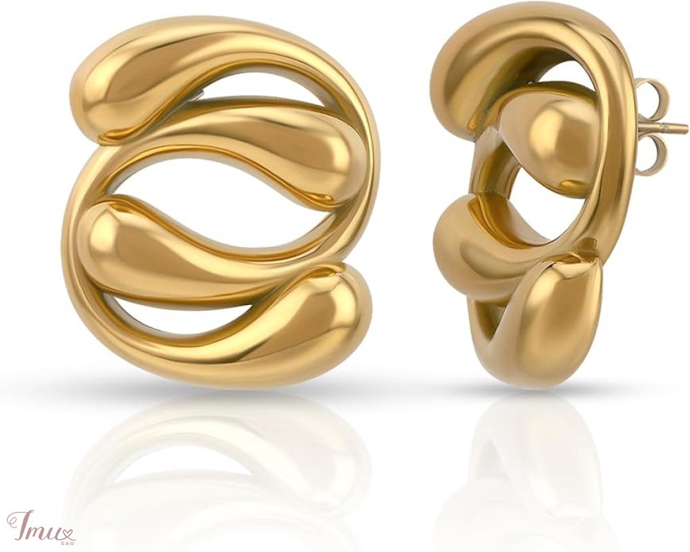 Elegantiški nerūdijančio plieno auskarai aukso spalvos – stilingas ir ilgaamžis aksesuaras kiekvienai progai. Atsparūs blukimui ir alergijoms, todėl galite mėgautis jų spindesiu kasdien!