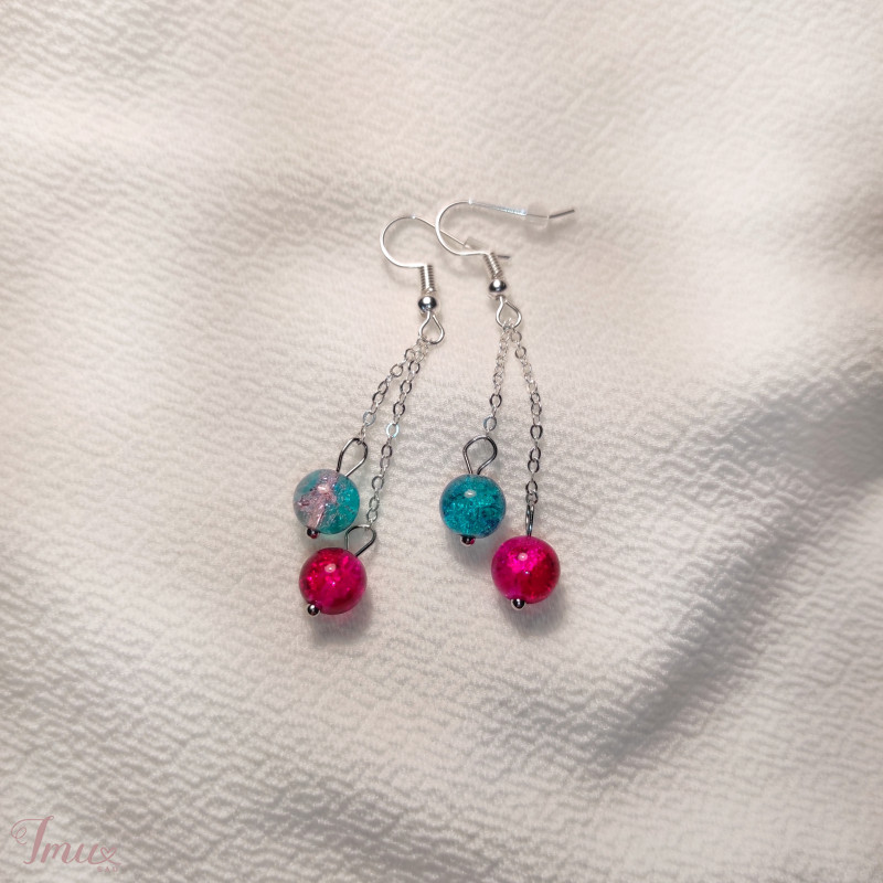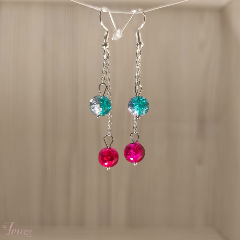 Auskarai su skaldyto stiklo rutuliukais