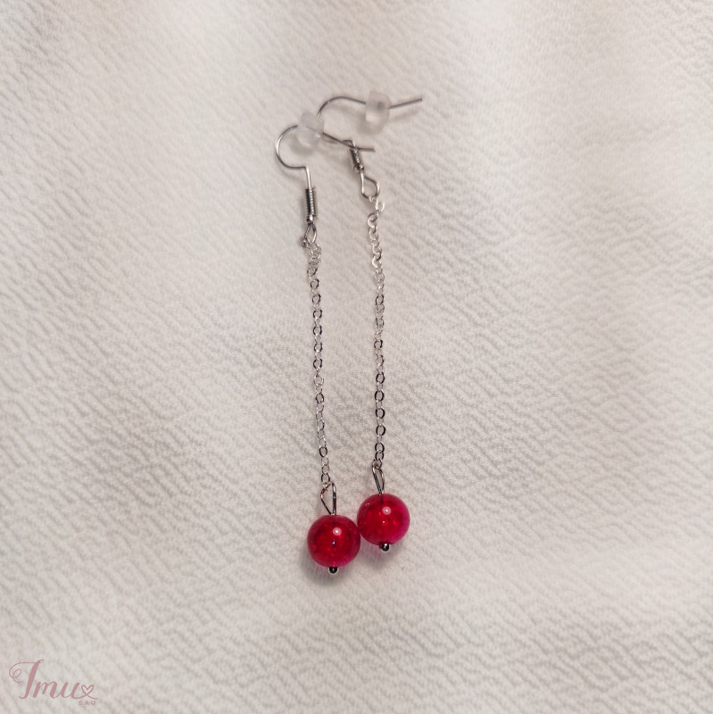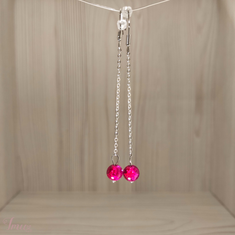 Rankų darbo auskarai. Rožinės/raudonos spalvos rutuliukai su sidabrinės spalvos metalu. Nenešioti. Dėl siuntimo/ atsiemimo rašyti asmeniškai. Jeigu pirksite komplektus, tada kainuos siuntimas mažiau