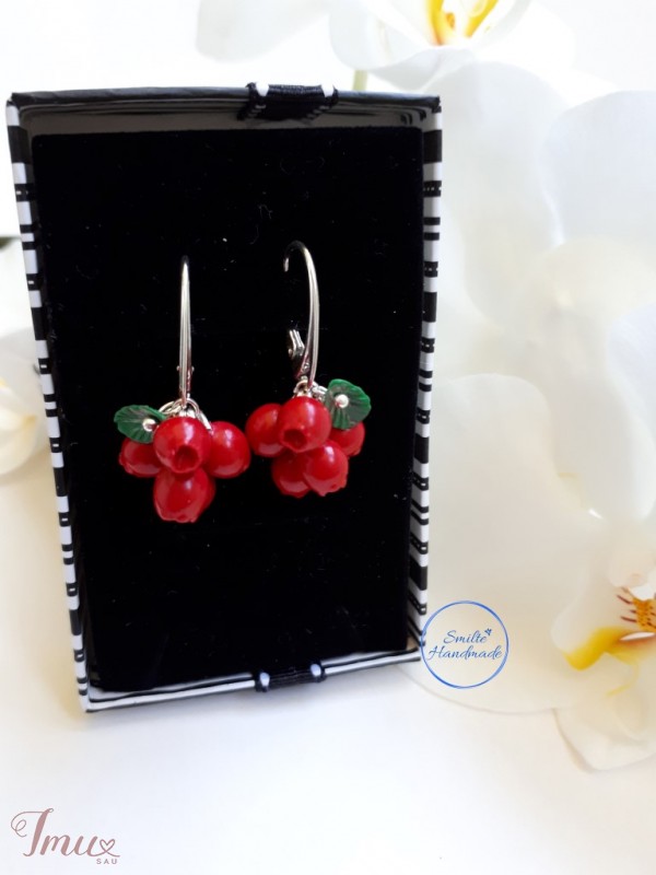 Rankų darbo auskarai. Kiekviena uoga formuota rankomis. Įvėrimas sidabrinis. Auskarų ilgis su užsegimu apie 3,3-3,4 cm. Siunčiu į visus miestus. Registruotu paštu, arba Omniva paštomatais.