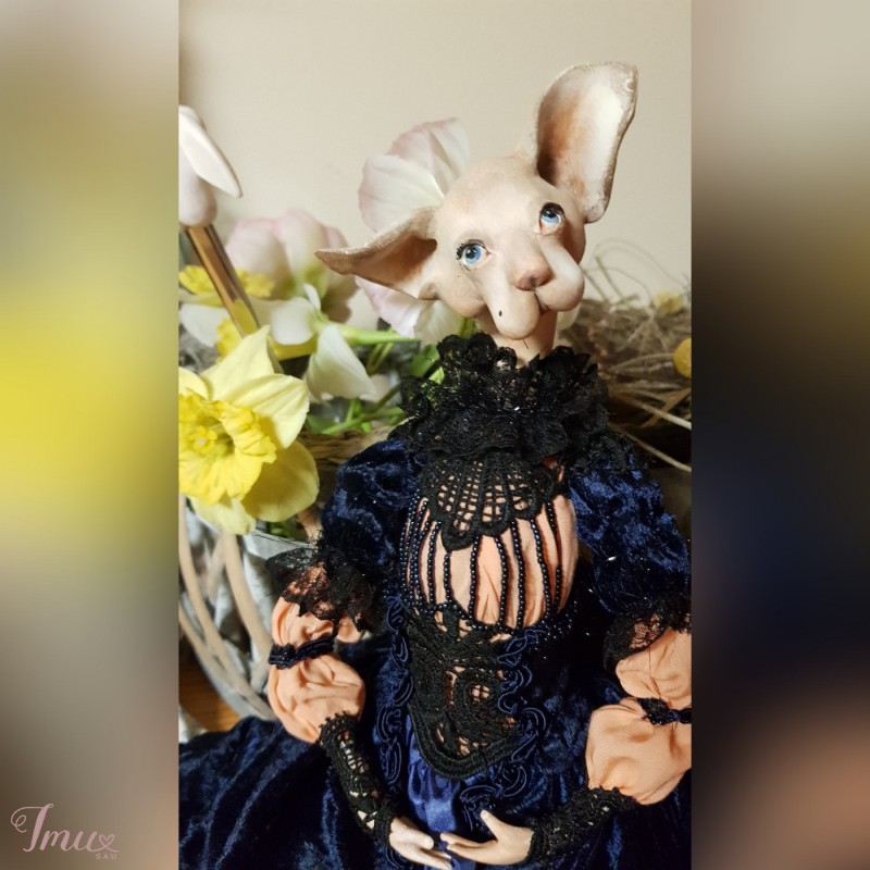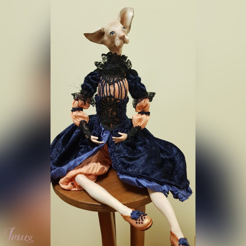 Autorinė rankų darbo vienetinė lėlė. Pagaminta iš Das paper clay. Rūbai įvairi tekstilė, gausiai siuvinėta mikrokaroliukais. Batai natūrali oda. Juda rankos, kojos. Sėdi savarankiškai. Puikiai papuoš Jūsų namus. Netinka žaisti vaikams.