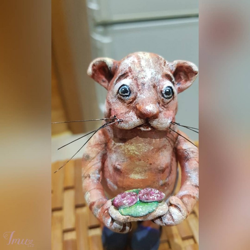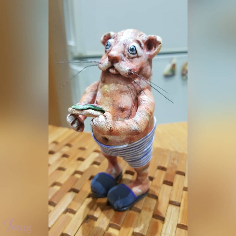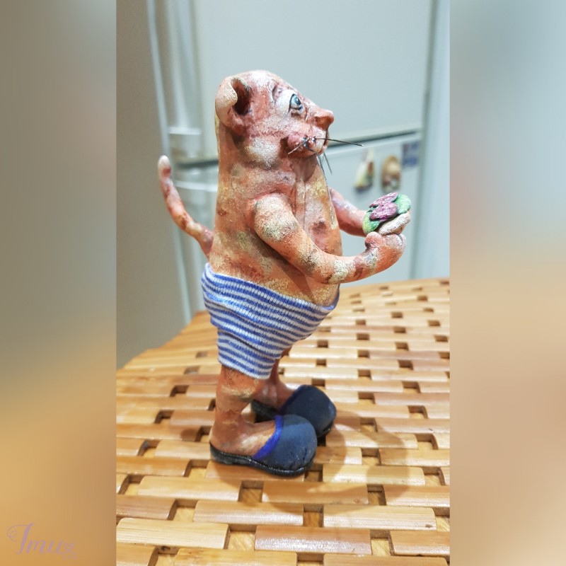 KAranTINIUKAS 😻(14 cm) rankų darbo, pagamintas iš Living doll paperclay, dažai: akrilas, akvarelė, trikotažas, natūrali oda, vienetinis gaminys