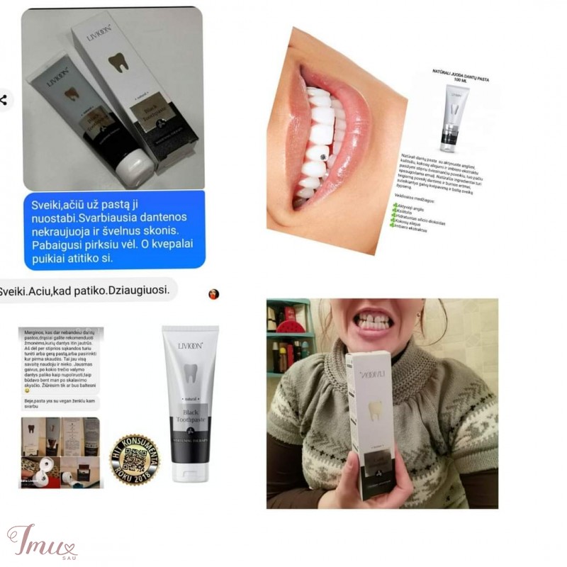 NATŪRALI JUODA DANTŲ PASTA 🏷Kiekis: 100 ml ♣️Natūrali dantų pasta su aktyvuota anglimi, ksilitoliu, kokosų aliejumi ir imbiero ekstraktu. ♣️Pasižymi stipriu šviesinančiu poveikiu, tuo pačiu negadina, o apsaugo dantų emalį. ♣️Natūralūs ingredientai turi teigiamą poveikį dantims ir burnos ertmei, suteikia gaivų kvapą ir baltą sveiką šypseną. ♣️⚡Tinka net ypač jautriems dantims⚡. Veikliosios medžiagos: 🔷️ Aktyvioji anglis 🔷 ️Ksilitolis 🔷️ Hidratuotas silicio dioksidas 🔷️ Kokosų aliejus 🔷️ Imbiero ekstraktas 🔷️🔷️ Aktyvioji anglis dėl poringos struktūros ir galimybės surišti daugelį cheminių junginių, pasižymi stipriomis valymo ir balinimo savybėmis. Pašalina tiek smulkias priemaišas, tiek ir ypač sunkiai pašalinamus tanino likučius, būtent geltonas dėmes, susidariusias geriant per daug kavos ar arbatos. Nedemineralizuoja emalio ir veikia išskirtinai švelniai, todėl gali būti sėkmingai naudojamas jautriems dantims. 🔷️🔷️Ksilitolis yra natūralus saldiklis, turintis cukraus spalvą, skonį ir konsistenciją, tačiau visiškai priešingą poveikį organizmui, nes panaikina žalingą suvartotų angliavandenių poveikį. Dėl savo savybių jis padeda atkurti rūgščių ir šarmų pusiausvyrą burnos ertmėje. Tai taip pat gali sustiprinti emalio mineralizaciją ir gydyti mažas ertmes, apsaugoti dantis nuo tolesnio dantų ėduonies. 🔷️🔷️Hidratuotas silicio dioksidas - natūralios kilmės medžiaga, pasižyminti abrazyvinėmis, poliravimo ir antikariogeninėmis savybėmis. 🔷️🔷️Kokosų aliejus apsaugo nuo dantų ėduonies, stabdo mikrobų augimą ir labai pagerina burnos ertmės būklę. Dėl kaprilo rūgšties kiekio jis veiksmingai naikina bakterijų atsiradimo priežastis, kurios yra atsakingos už dantų ėduonį. Reguliariai naudojant, jis užtikrina sveikesnes dantenas, pašalindamas kraujavimą ir skausmą. 🔷️🔷️Imbiero ekstrakte, gausu antibakterinių ir priešuždegiminių medžiagų, jis teigiamai veikia burnos ertmę, nes puikiai ją gaivina ir dezinfekuoja, taip pat gydo mažas infekcijas.