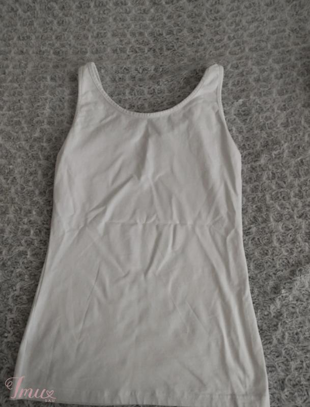 Balta maikutė su labai trumpomis rankovėmis – lengva, patogi ir puikiai tinkanti kasdienai.