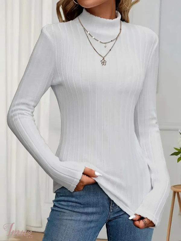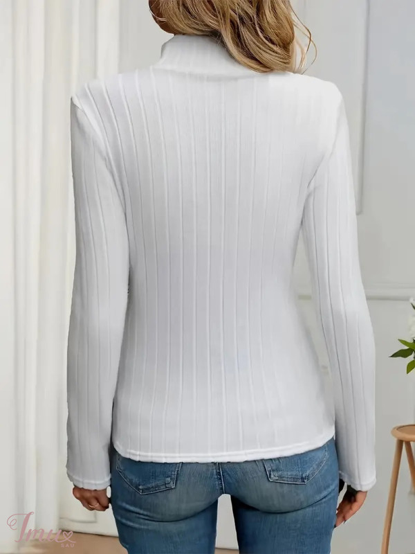 Baltas moteriškas golfas ilgomis rankovėmis 10795