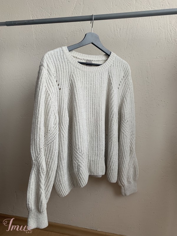 Labai jaukus, tinkantis prie įvairių derinių megztinis. Rankovė nuo peties - 68 cm Apimtis tarp pažastų - 68 cm Ilgis nuo peties - 62cm Dydis XL, tačiau gali būti nešiojamas ir L,M, kadangi yra platus ir laisvai krentantis.