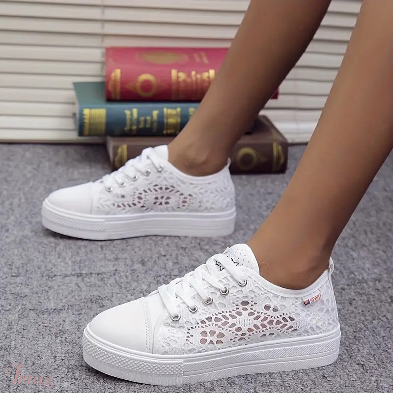 Balti kvėpuojantys moteriški tinkliniai sportbačiai 94505