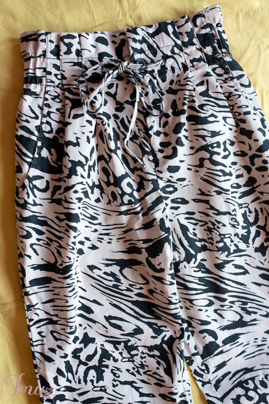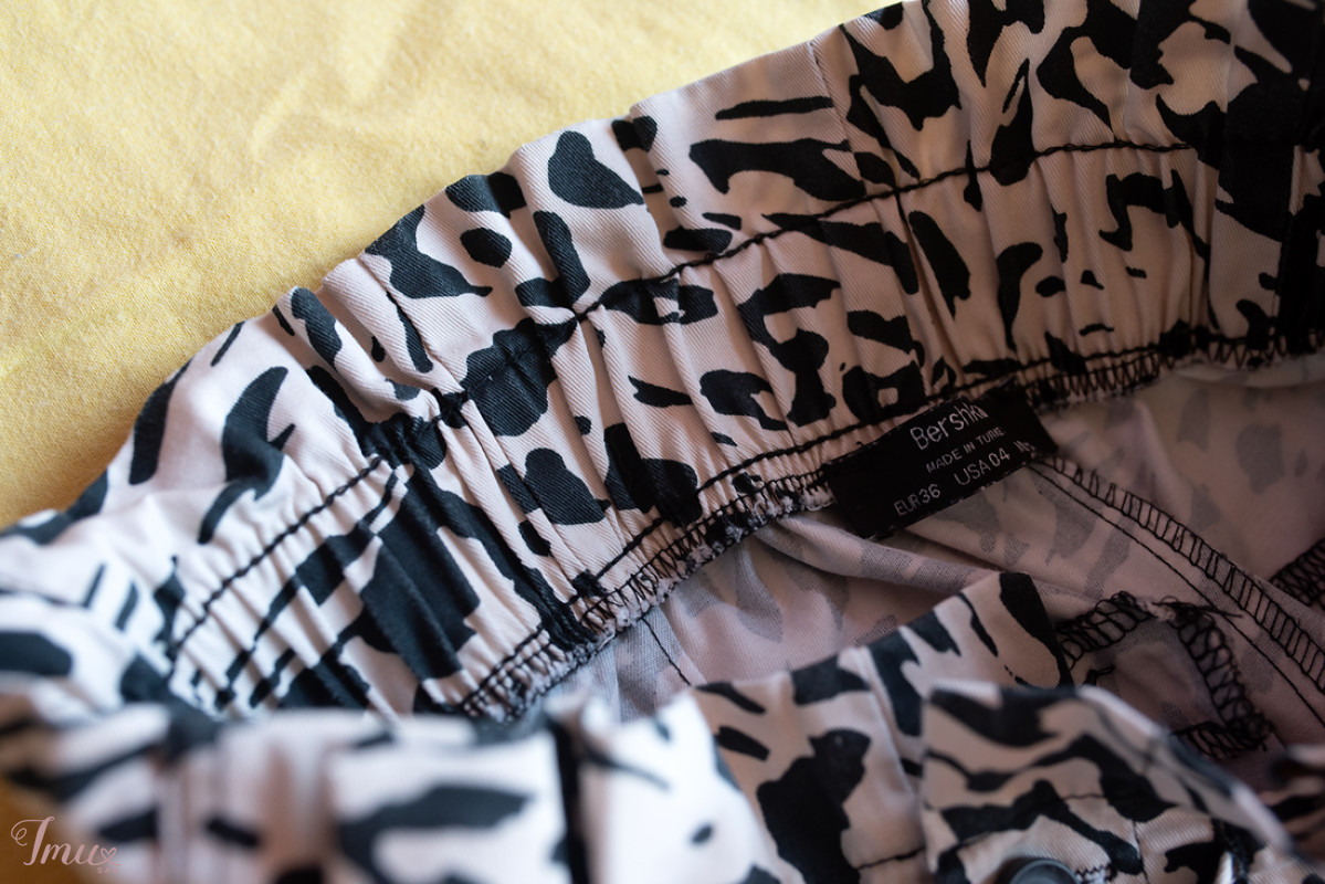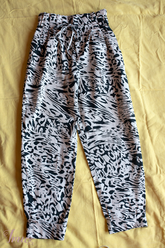 Mom fit stiliaus, plačios per klubus, high waist trumpintos margos kreminės/juodos spalvos kelnės aukštu juosmeniu. S dydis. Be defektų.