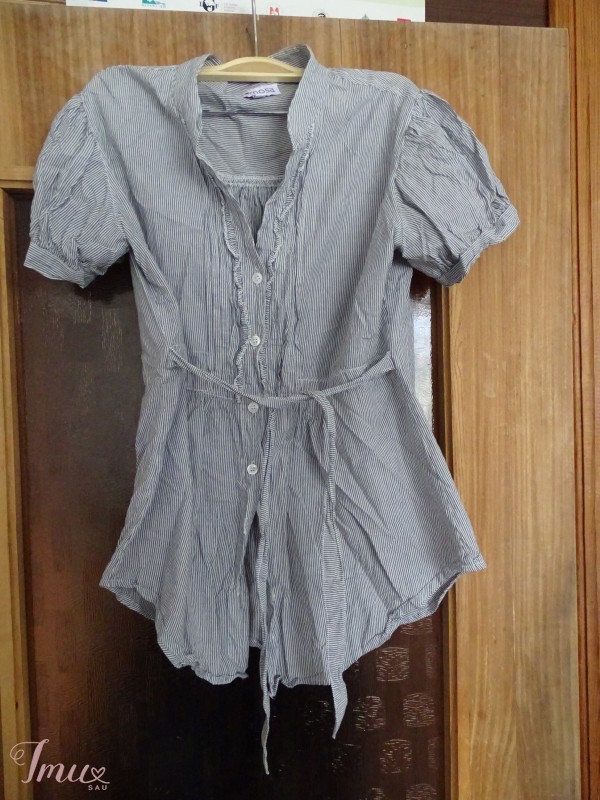 Parduodama bliuzelė su dirželiu. Priekis susisega sagomis. Dydis M-L. Trumpos rankovės.