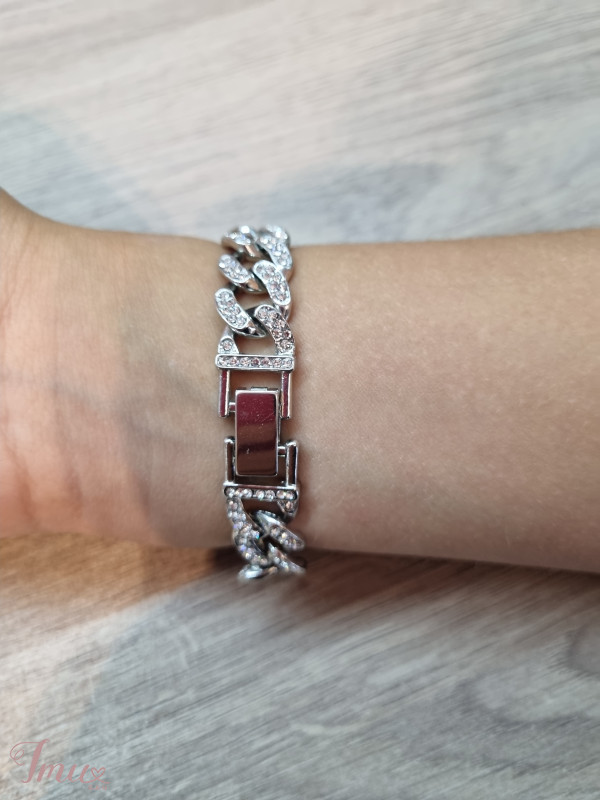 Nauja, daili sidabro spalvos apyrankė. Apyrankę puošia dirbtiniai deimantukai.