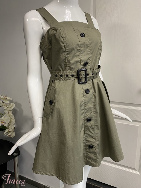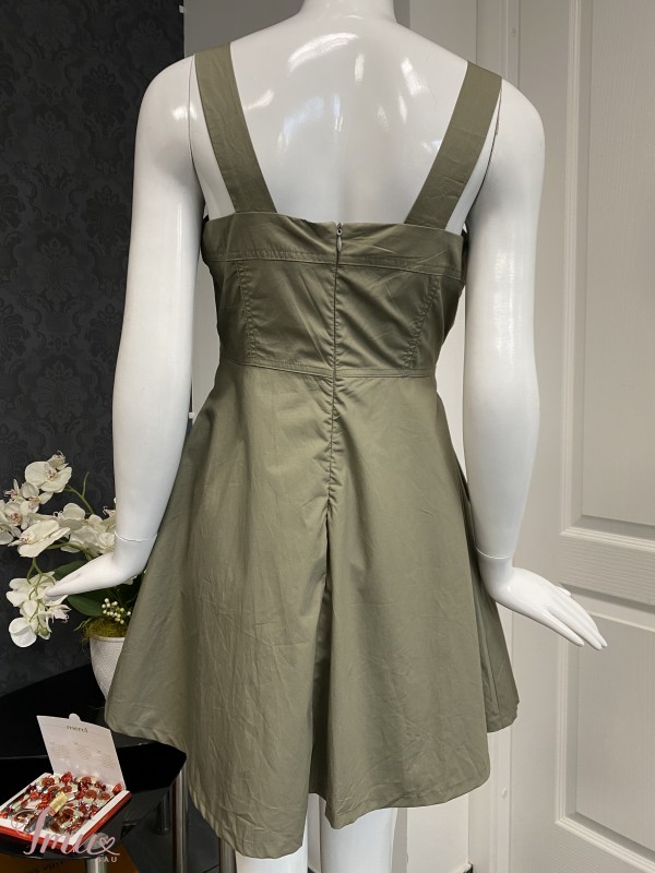 Chaki spalvos suknelė, dydis S. išmatavimai: ilgis 67 cm, liemuo 76 cm, krūtinės apimtis 90 cm.