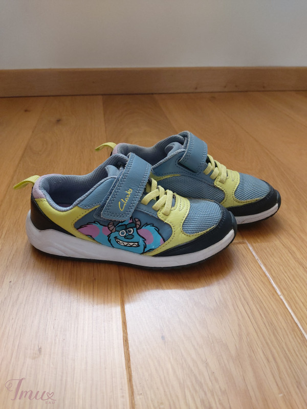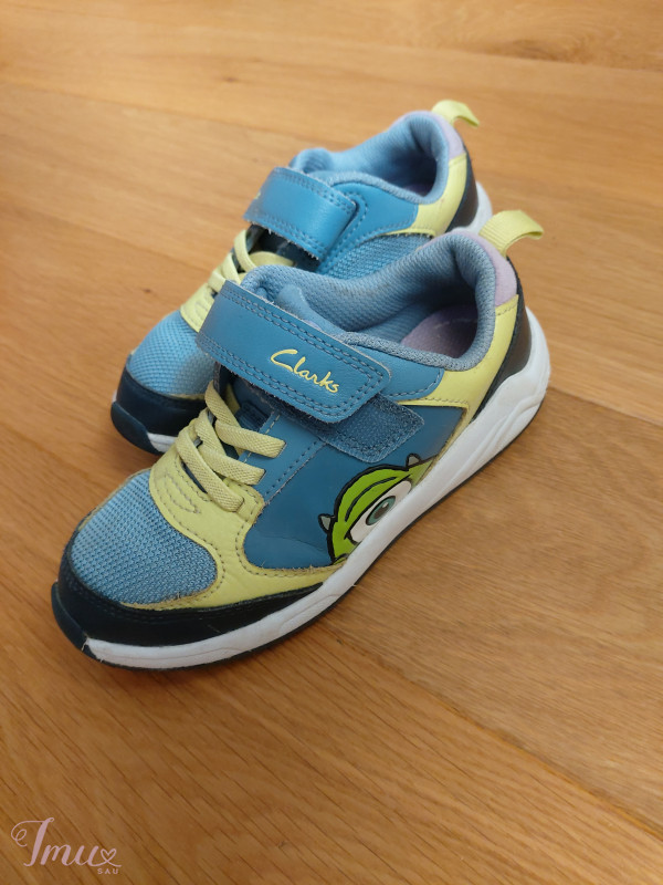 Labai mylėti, puikios būklės kedukai su skirtingai personažais ant abiejų batukų. Užsegali velco juostele, yra gumelė kad prilaikytų koją. Stabiliai laikosi ant kojytės. Vidpadis 17 cm.