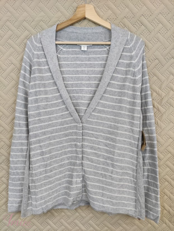 Sveiki, aš Sandra. Esu patikima, turiu paskyrą kitoje gerai žinomoje drabužių pardavimo platformoje ir daug teigiamų atsiliepimų. Kviečiu apsižvalgyti mano spintoje ir nuo pakabos nusikabinti vieną kitą perliuką. El. paštu ar kitu būdu galiu atsiųsti daugiau nuotraukų. Vilnius, bet galiu siųsti į kitus miestus. Vilniuje galite atvykti įsigyti sutartoje vietoje. Nuotraukose: Naujas kardiganas. Išmatavimai: Ilgis nuo peties 66 cm; krūtinė gulimoje padėtyje 53 cm; pečiai neturi pečių linijų, rankovė 63 cm. Sudėtis: 50% viskozės, 50% medvilnės.