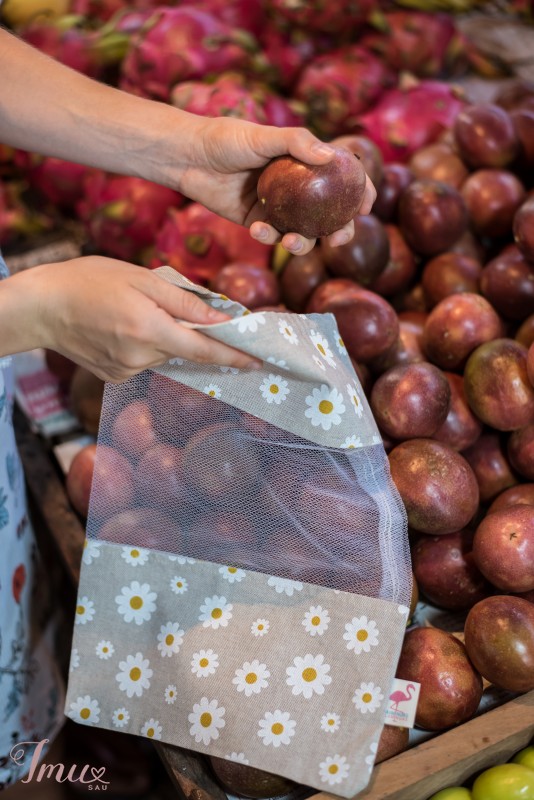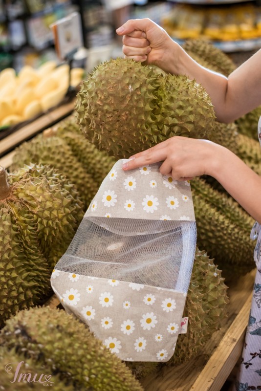 Patvarus ir mielas rankų darbo daugkartinis maišelis su ramunėlėm. Neleisk plastikui karaliauti vandenynuose :) Išmatavimai apie 30cm x 25cm