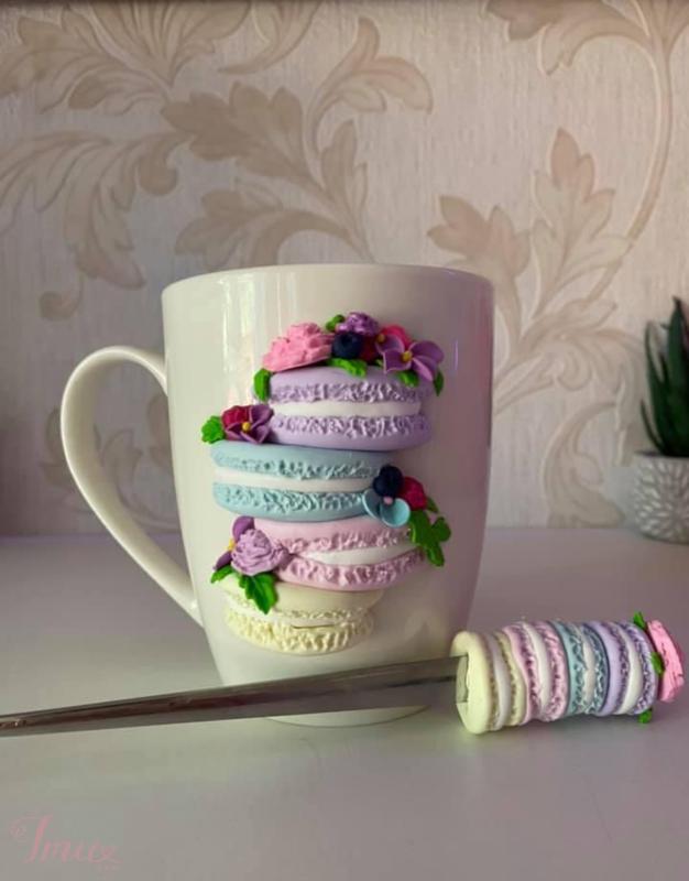 "Macaroons" Dekoruotas puodelis su FIMO modelinu, nustebinkite puikia dovana draugams, šeimai ar pažįstamiems👌 Kiekvienas puodukas yra rankų darbo, dekoruotas kruopščiai ir su labai daug meilės🥰 Tad nepraleiskite progos ir įsigykite❤️ Galima ir padaryti pagal užsakimą su vardu, ar norimais paveiksliukais☺️