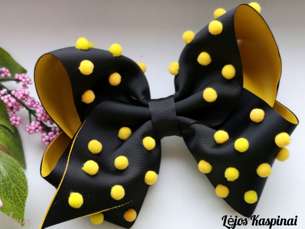 Iškirtinio dydžio Kaspinas su Geltonais burbuliukais. Kaspinas standžios medžiagos, kad laikytų puikias savo formas :)