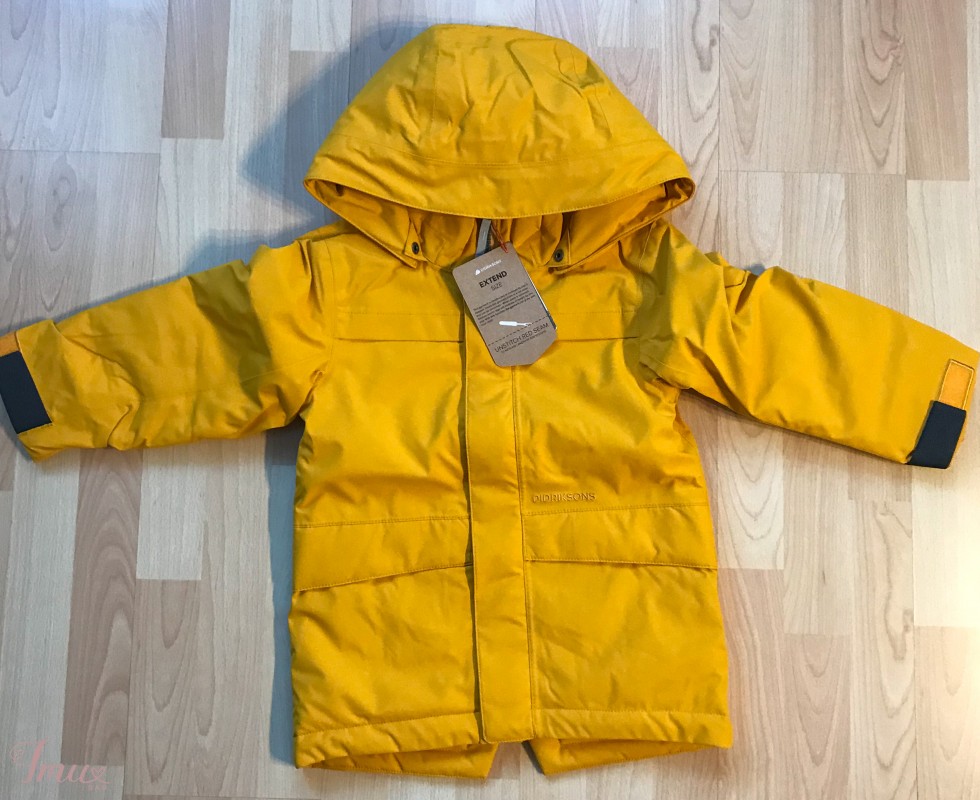 Šilta žiemos/rudens parka Didriksons su didinimo funkcija leidžiančia drabužį padidinti vienu dydžiu. Vandens atsparumas 10000mm. Dydis etiketėje 110. Siunčiu omniva paštomatu 2€ Išmatavimai: Rankovė nuo peties/ nuo pažasties 41/31; ilgis 51/54; plotis 40cm.