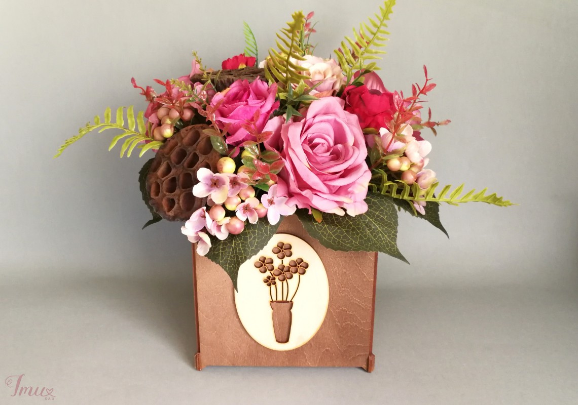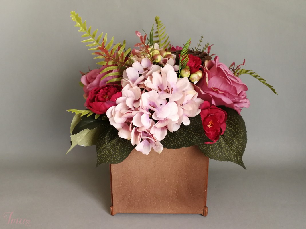 Tai gausi ir didelė dirbtinių gėlių kompozicija medinėje dėžutėje. Aukštis nuo stalo apie 32 cm, skersmuo žiedyno apie 35 cm. Daugiau pasirinkimo ieškokite https://www.facebook.com/media/set...