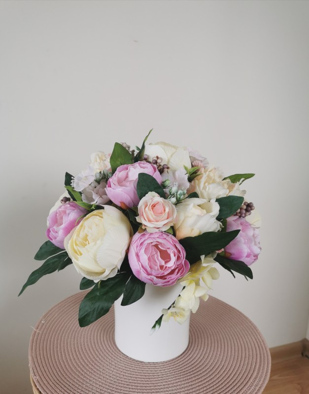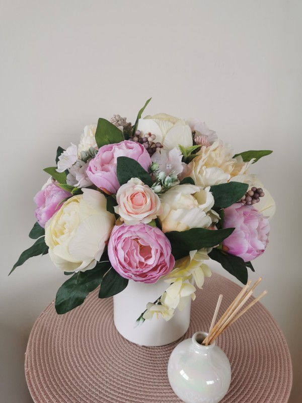 Tai i rankų darbo dirbtinė gėlių kompozicija keramikiniame vazonelyje. Galimi užsakymai.