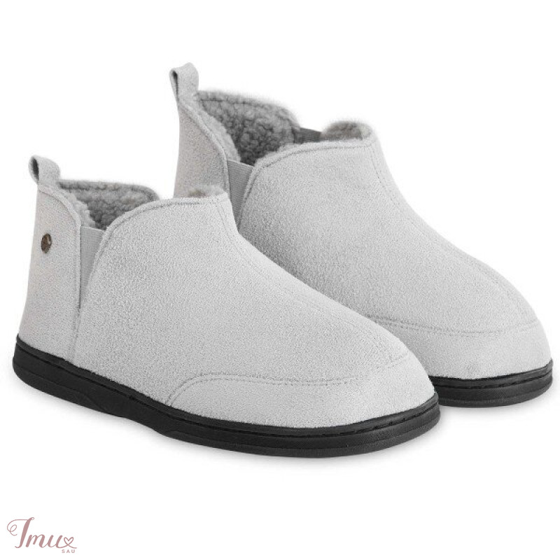 Šviesiai pilkos šlepetės: Dydis 37. Vidpadis: 23 cm. Išorės medžiaga: versta dirbtinė oda. Vidus: dirbtinis kailis.