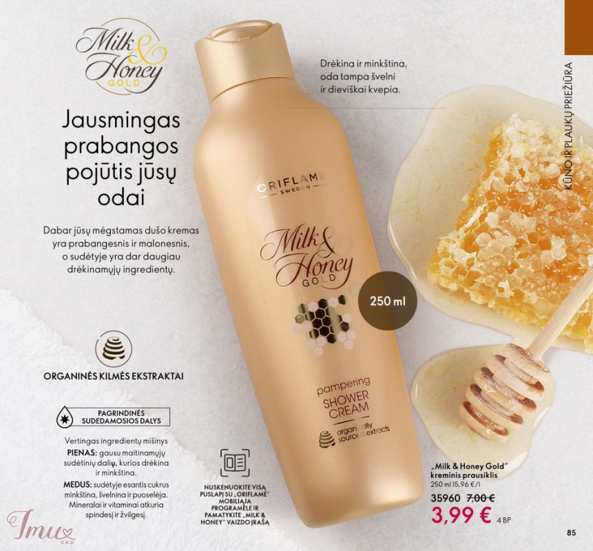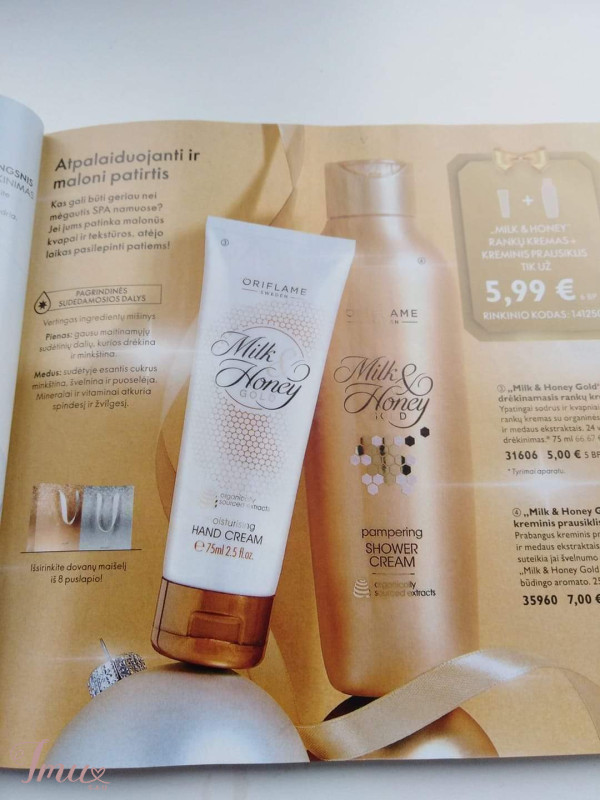 0RIFLAME Milk I Honey. PRABANGUS Pienas ir medus Jie labai naudingi odai. Pienas - gausu maitinamųjų sudėtinio dalių, kurios drėkina ir maitina. Medus - esantis cukrus - minkština, švelnina, puoselėja. Mineralai ir vitaminai - atkuria spindesį ir žvilgesį. 🦋Kvapas super 🦋Plaukai švelnūs, lengvi, blizga 🦋Oda labai švelni, glotni, išpuoselėta. 🦋Nusiprausus netraukia odos. 🦋Ne džiovina odos, rankų 🦋Įpatingai puoselėja, 🦋Intensyviai maitina 🦋Drėkina 24 val. 🦋Puikiai susigeria. 🦋Muilas su glicerinu, talku, pieno ir medaus ekstraktu 🌹Šveitiklis 200 ml kaina 7 € (vietoje 9 €) 🌹Rankų šveitiklis kaina 4 € (vietoje 5.90 €) 🌹Kreminis prausiklis 250 ml kaina 5 € (vietoj 7 €) 🌹Rankų ir kūno kremas 250 ml kaina 4.50 € (vietoj 8 €) 🌹Šampūnas 250 ml kaina 5 € (vietoj 7 €) 🌹Kondicionierius 250 ml kaina 5 € (vietoj 7 €) 🌹Minkštinamasis skystas rankų muilas 300 ml kaina 5 € (vietoj 7 €) 🌹Švelninamasis kreminis muilas 75 g kaina 2.30€ (vietoj 3€)