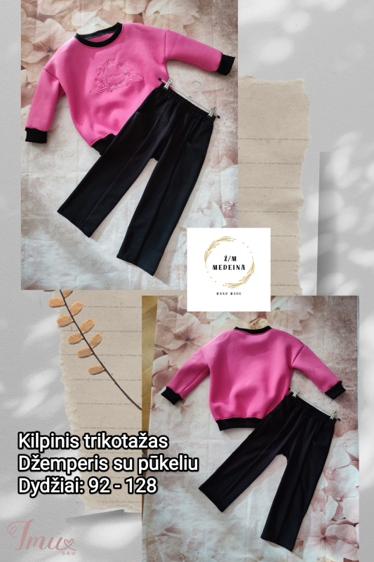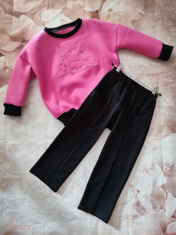 Naujas, dviejų dalių komplektukas mergaitei. Džemperis Kilpinis trikotažas su pūkeliu, kelnės kilpinis trikotažas. 116 ūgiui