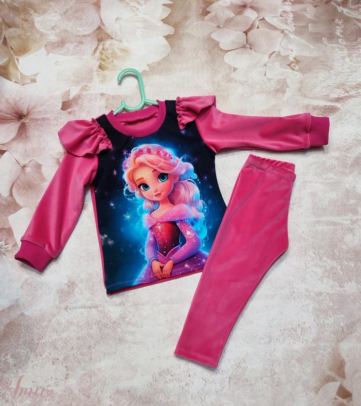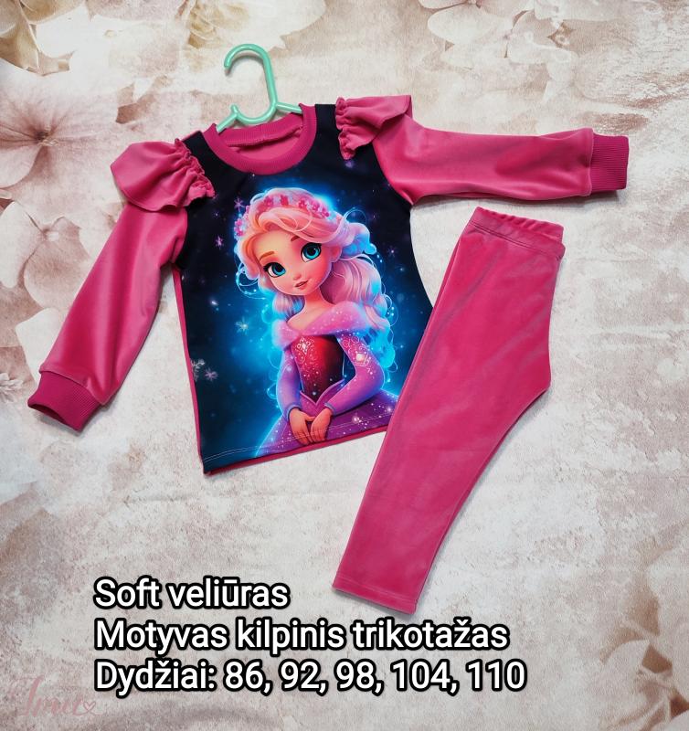 Naujas, dviejų dalių komplektukas mergaitei. Džemperis ir timputės soft veliūras, motyvas kilpinis trikotažas