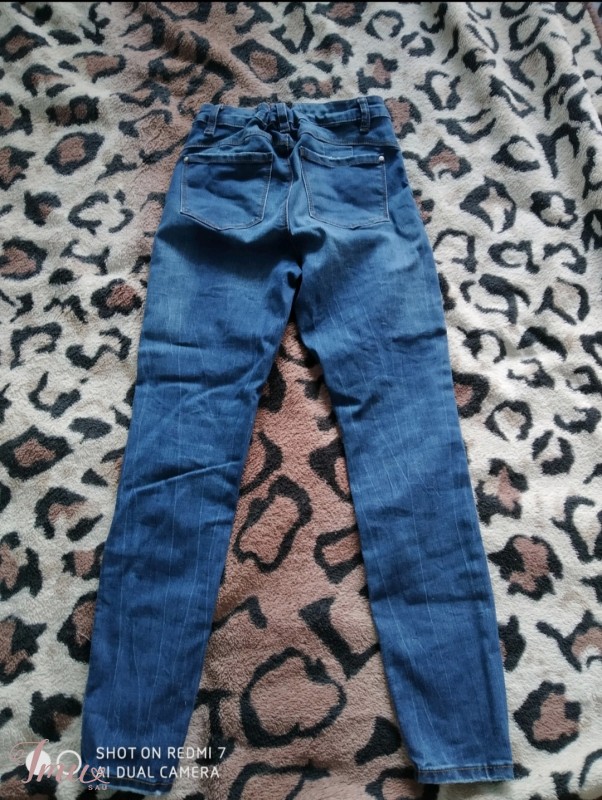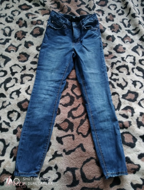 Džinsai su push up. Dėvėti labai mažai, kadangi pasidarė dideli. Buvo įverta guma.