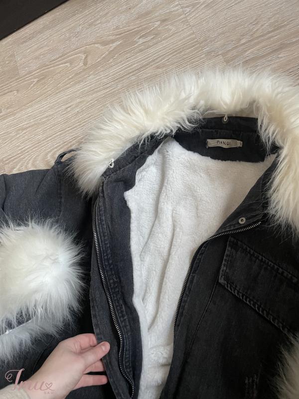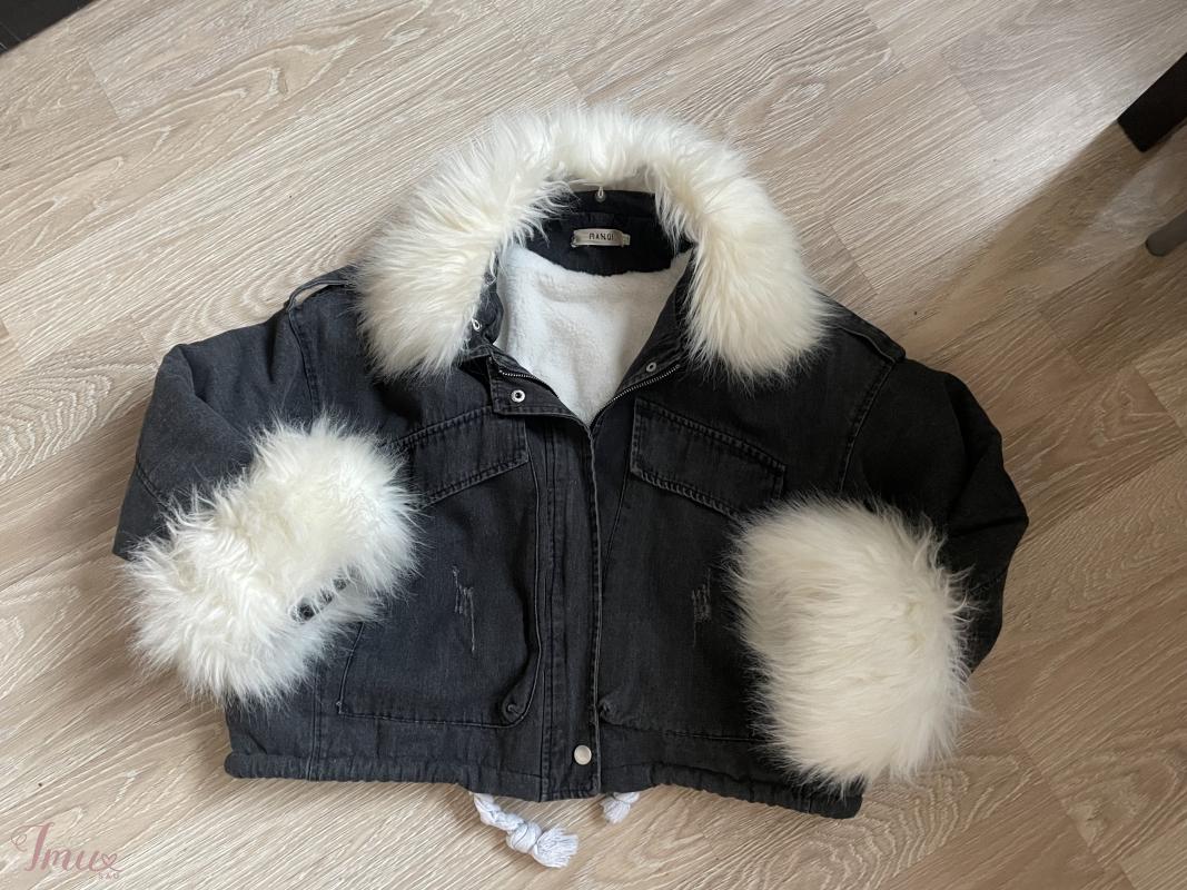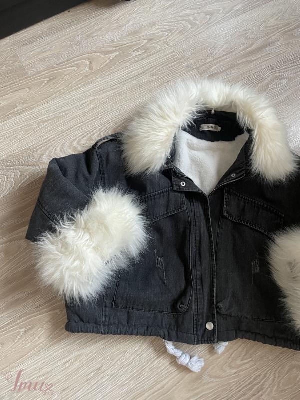 Džinsinė striukė su kailiuku