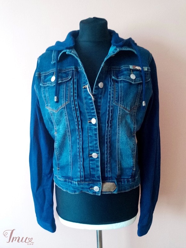 Naujas, be defektų Pažastų sr. ap. 104 cm Liemuo 96 cm Ilgis 51 cm Pečiai 41 cm, Rankovės ilgis 65 cm Kapišonas nusisega, rankovės ir kapišonas trikotažinio audinio Sudėtis medvilnė, elastanas