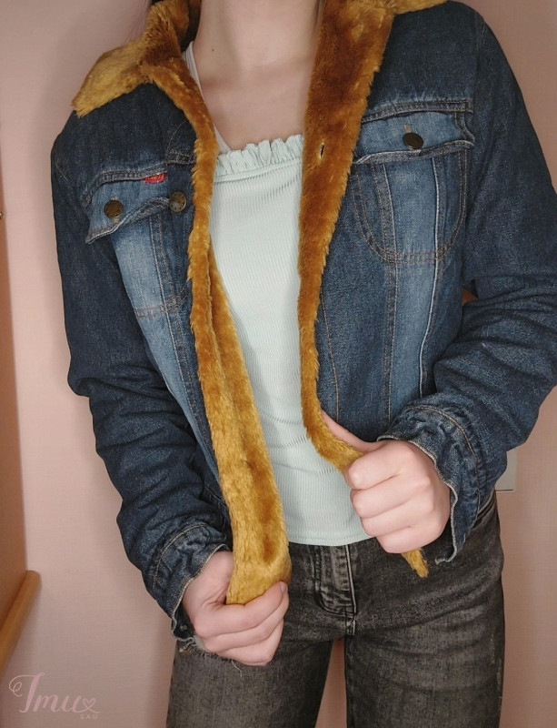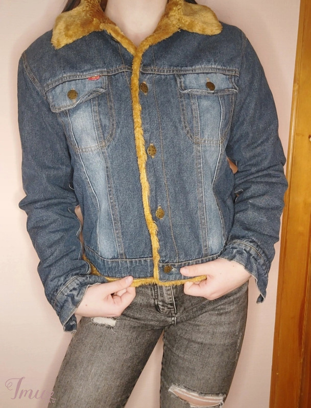 Džinsinis švarkelis su kailiuku. Be defektų, labai gražiai atrodo. S dydis. 3€