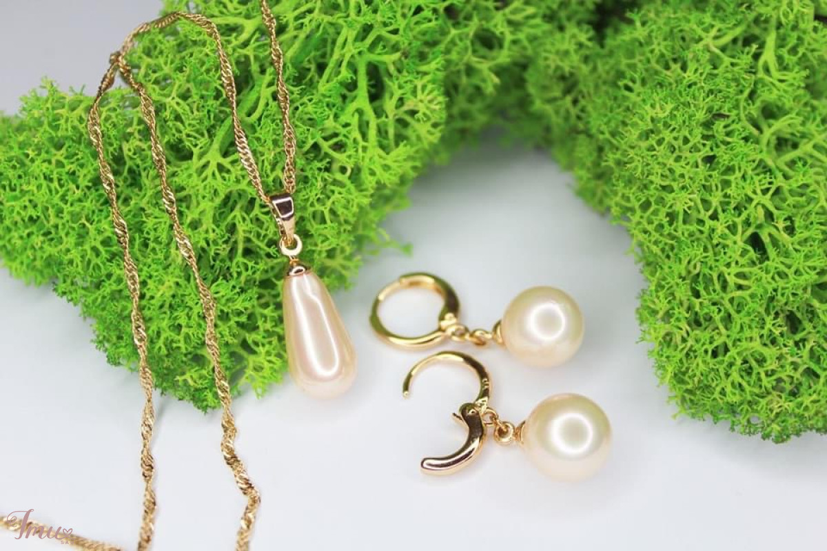 Elegantiškas moteriškas papuošalų komplektukas su perliukais iš medicininio metalo