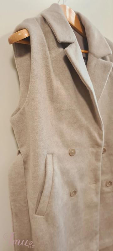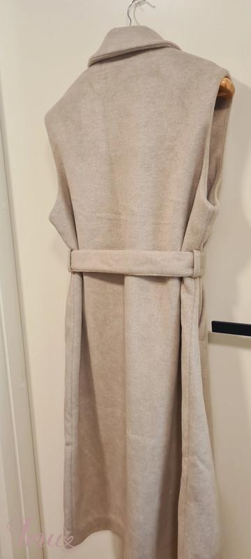 Naujas, nedėvėtas Guido Maria Kretschmer klasikinis paltas - liemenė be etiketės originalioje pakuotėje. 38/M dydis. Liemens apimtis: ~126cm. Švelnios smėlio spalvos. Su pamušalu, kišenėmis ir diržu. Paltas itin malonios, švelnios minkštos tekstūros. Įprasto prigludimo. Viršaus audinys: 88% poliesteris, 12% viskozė. Pamušalas: 100% poliesteris. Mokėjau 99EUR.