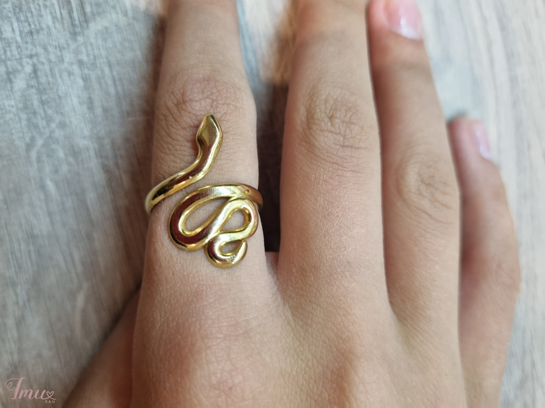 Ausko spalvos žiedas su gyvatėle. Naujas, puikios būklės :).