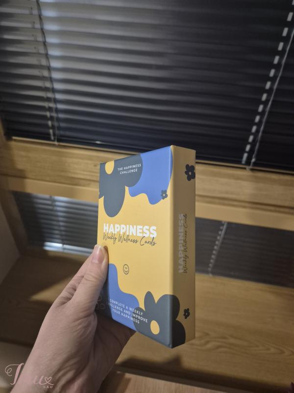 Metų challenge kortos. Trūksta vienos kortos (šešta savaitė) Weekly Wellness - Happiness The Happiness Weekly Wellness Cards are designed to help improve your wellbeing and lifestyle. These fun, weekly challenges focus on the key pillars of happiness and ways to boost your mood. With 52 unique challenge cards and an eco-friendly display stand, this pack will help you log your journey and reflect on your progress.