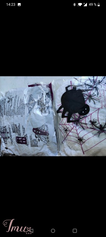 Helovynui skirta dekoracija-voratinklis su vorais. Juodos ir baltos spalvų. Pažeista pakuotė.