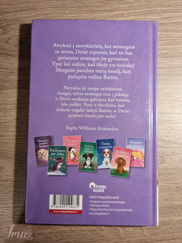 Puikios būklės, įdomi knygutė. Aprašymas: Atvykusi į stovyklavietę, kur atostogaus su šeima, Deizė supranta, kad tai bus geriausios atostogos jos gyvenime. Ypač kai sužino, kad ūkyje yra šuniukų! Mergaitė pamilsta vieną šunelį, kurį paslapčia vadina Barniu. Netrukus jie tampa neišskiriami draugai, tačiau atostogos eina į pabaigą ir Deizė nesiliauja galvojusi, kad šuniuką teks palikti. Nors ir žinodama, kad niekada negalės laikyti Barnio, ar Deizė prisivers ištarti jam sudie?