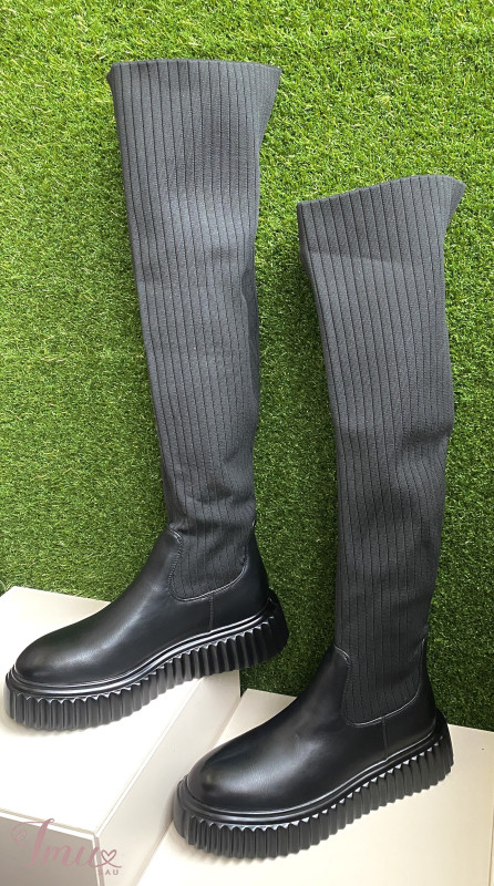 virš keliu, visas ilgis nuo pado apacios 60cm ties aulo viršumi 38cm apimtis. tamprus aulas, apsitempia palei blauzda