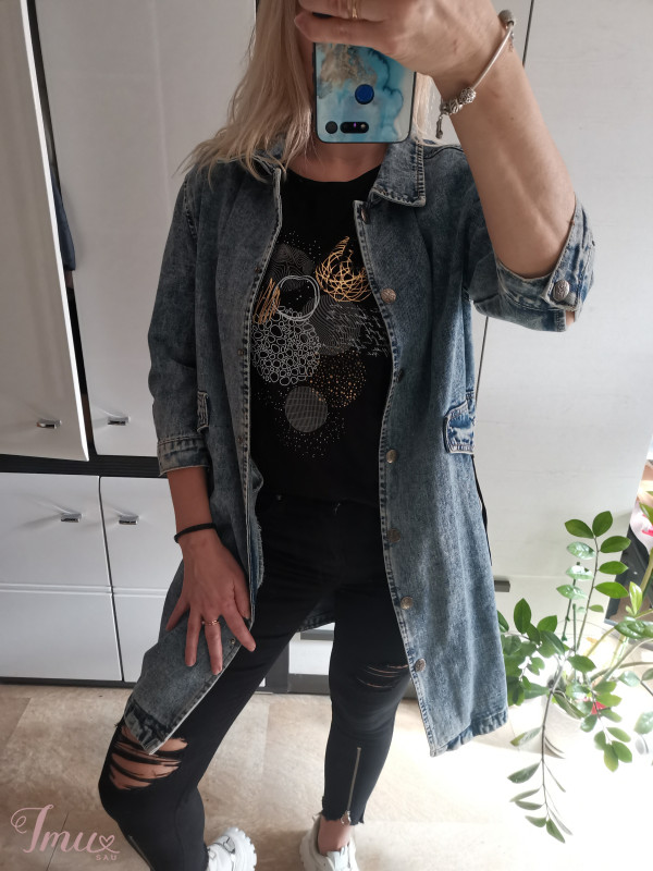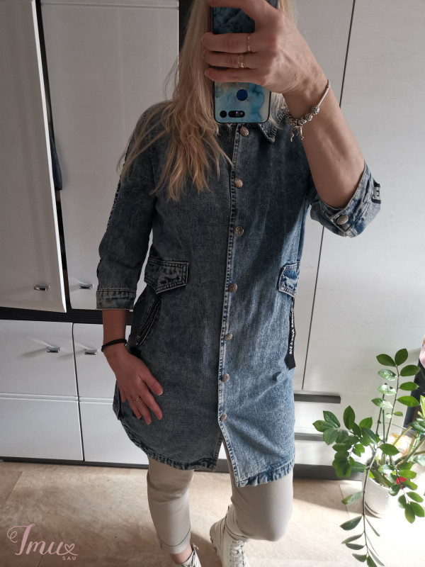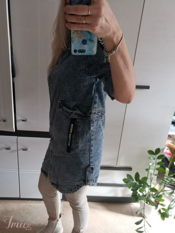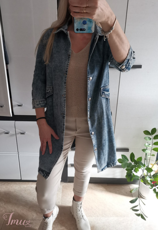 Fotografuota ant 40 dydi devincios. Kelis kartus vilketas. Graziai ziurisi ir su atraitotomis rankovytemis. Švarkelis segasi knopkutemis. Visas ilgis priekyje 88cm, gale 85cm., po pazastimis 52cm, per klubus 52cm. Siunčiu