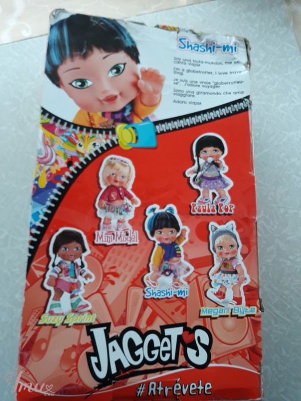 Lėlė Jaggets yra modelis ir labai mėgsta madą ir stilių. Ši lėlė visada bus madinga ir stilinga. Lėlės akys išraiškingos ir kerinčios, todėl sužavės kiekvieną mergaitę. Komplekte yra čiulptukas ir jin su pampersu. Stipriai deformuota dėžutė. Siuntimas +2 eur.